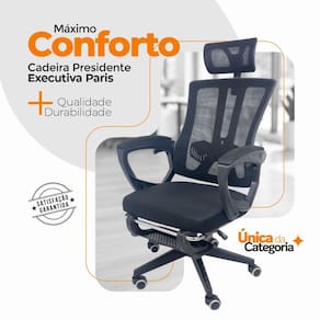 A Cadeira Presidente Paris é a combinação perfeita entre design sofisticado e conforto ergonômico. Desenvolvida para proporcionar bem-estar durante longas jornadas de trabalho, ela traz recursos modernos e funcionais que garantem uma postura adequada e conforto excepcional.