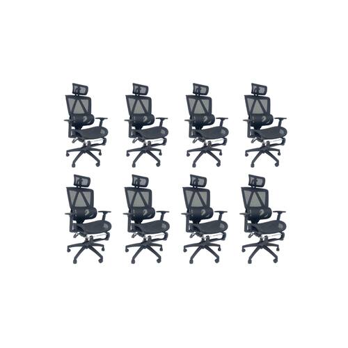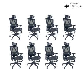 A limpeza pode ser realizada com um pano úmido e detergente neutro, garantindo a preservação do acabamento em Tela Mesh Nylon e a durabilidade da cadeira.