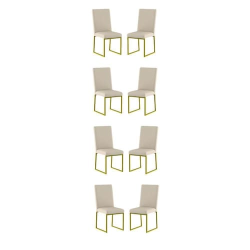 Você receberá Quatro volumse, ou seja, apenas Oito Cadeira Estofada para Mesa de Jantar com Base Industrial Dourado.