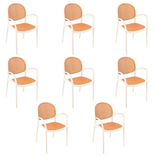 Kit 8 Cadeiras de Jantar com Braços Mumbai de Telinha Branco -