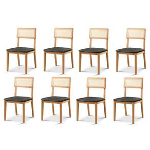 Kit 8 Cadeiras de Jantar com Encosto de Telinha Ava Preto/Marrom