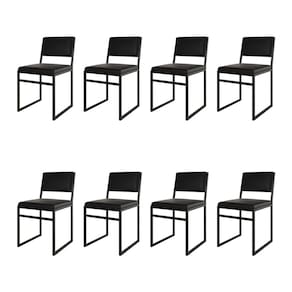 Kit 8 Cadeiras De Jantar Industrial Isa Assento Corino Preto