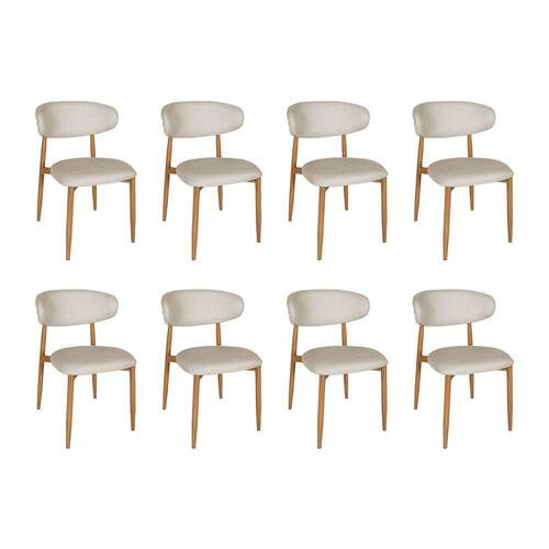 AS IMAGENS SÃO MERAMENTE ILUSTRATIVAS E PODEM SOFRER VARIAÇÕES DE COR E PEQUENOS DETALHES DE ACORDO COM O SEU MONITOR, ILUMINAÇÃO DO AMBIENTE E ATÉ MESMO A SUA PERCEPÇÃO 8 Cadeiras de Jantar Lucy Estrutura AÃo Carbono Laminado Natural com Estofado Linho Cru