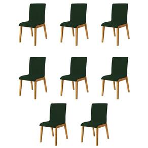 Kit 8 Cadeiras De Jantar Luxo Diamante Estofadas Em Veludo Verde Base Madeira Maciça
