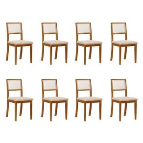 Kit 8 Cadeiras De Jantar Luxo Madeira Maciça Encosto Telinha Palha Estofada Veludo Bege Rubi - Preto