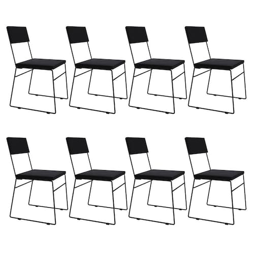 Kit 8 Cadeiras de Jantar Málaga Assento Veludo Preto