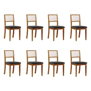 Kit 8 Cadeiras De Jantar Estofada Courino Rubi Madeira Maciça Cor: Preto Kit 8 Cadeiras de Jantar Palha Estofadas Courino Tela Sextavada Rubi Madeira Maciça Castanho A Cadeira Estofada possui formato anatômico e vai deixar seu ambiente muito mais bonito e sofisticado. Mantendo todo conforto que o móvel precisa ainda conta com enorme elegância. Tipo: Cadeira Modelo: Estofada Cor do Assento: Preto Cor da Base: Castanho Tecido: Courino Medidas: Altura: 92cm Largura: 46cm Comprimento: 56cm ATENÇÃO OBS: BASE DE MADEIRA PODE APRESENTAR DETALHES (RANHURAS) DA PRÓPRIA MADEIRA, O QUE A TORNA ÚNICA E , SENDO UMA PEÇA E NÃO UM DE FABRICAÇÃO! IMAGENS MERAMENTE ILUSTRATIVAS REALIZADO EDIÇÃO, PODENDO HAVER UMA PEQUENA VARIAÇÃO DE COR DEPENDENDO DE CADA TELA OU MONITOR. Marca: Home Nobre