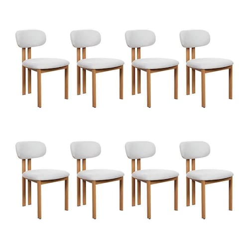AS IMAGENS SÃO MERAMENTE ILUSTRATIVAS E PODEM SOFRER VARIAÇÕES DE COR E PEQUENOS DETALHES DE ACORDO COM O SEU MONITOR, ILUMINAÇÃO DO AMBIENTE E ATÉ MESMO A SUA PERCEPÇÃO 8 Cadeiras de Jantar Tulipa Estrutura AÃo Carbono Laminado Natural com Estofado Linho Cru