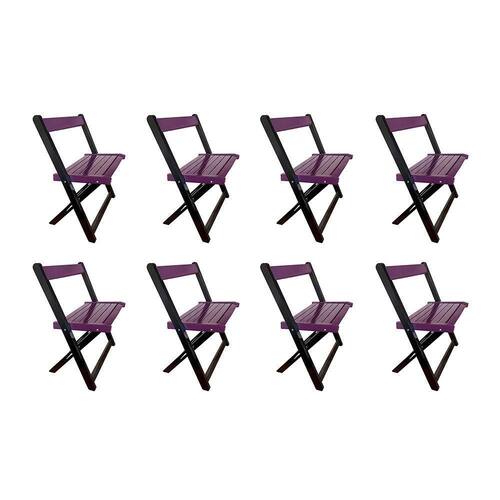 AS IMAGENS SÃO MERAMENTE ILUSTRATIVAS E PODEM SOFRER VARIAÇÕES DE COR E PEQUENOS DETALHES DE ACORDO COM O SEU MONITOR, ILUMINAÇÃO DO AMBIENTE E ATÉ MESMO A SUA PERCEPÇÃO VISUAL.Kit 8 Cadeiras de Madeira DobrÃvel Roxo