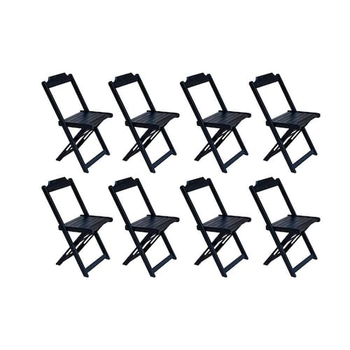 Kit 8 Cadeiras De Madeira Dobravel Preto é ideal para bares, restaurantes, estabelecimentos, áreas de lazer e tambem para sua casa. Feito em madeira maciça, tornando resistentes e duráveis. Seu design permite que seja encaixado em qualquer ambiente, trazendo um toque a mais para seu estabelecimento. Além de sua durabilidade, o que lhe trará conforto para servir seus clientes. Por ser dobrável torna-se mais fácil guardar, manusear e limpar o produto. Atenção: EVITE USAR PRODUTOS ABRASIVOS E QUíMICOS PARA LIMPEZA DO PRODUTO, aconselha-se o uso de pano umedecido para melhor conservação; mantenha o produto fora de chuva e sol constantes. CADEIRA Cor: Preto Modelo: Dobravel Dimensões: Altura 80 | Largura 45 | Profundidade 42