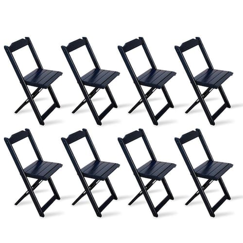 Kit 8 Cadeiras Dobrável Madeira Preta - Cor: Preto