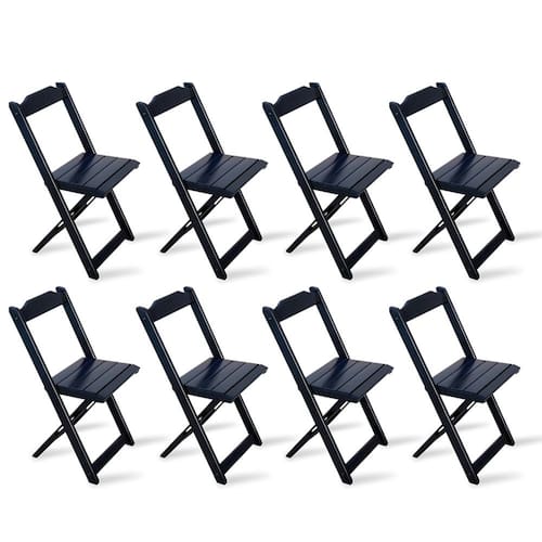 Kit 8 Cadeiras Dobrável Madeira Preta - Tarimatã é ideal para bares, restaurantes, estabelecimentos, áreas de lazer e tambem para sua casa. Em madeira maciça, tornando-os resistentes e duráveis. Seu design permite que esse conjunto seja encaixado em qualquer ambiente, trazendo um toque a mais para seu estabelecimento. Além de sua durabilidade, o que lhe trará conforto para servir seus clientes. Por ser dobrável torna-se mais fácil guardar, manusear e limpar o produto. Atenção: EVITE USAR PRODUTOS ABRASIVOS E QUÍMICOS PARA LIMPEZA DO PRODUTO, aconselha-se o uso de pano umedecido para melhor conservação mantenha o produto fora de chuva e sol constantes. *imagens meramente ilustrativas* Marca: TARIMATA