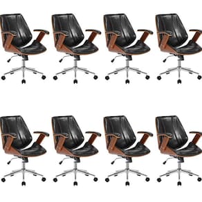 A cadeira Kopenhagen Diretor é toda revestida em couro ecológico e possui sua estrutura em madeira, o que a torna ótima por conta de seu design para salas de reuniões. Ela também possui o mecanismo relax, o que irá manter quem estiver sentado nela mais confortável, além de ser possível ajustar a altura do assento! Altura do Conjunto: 100 cm Ambiente: null Ambiente Principal: Escritório Cor: Preto Cor do Produto: Preto Informação Complementar: 8x Cadeira Escritório Diretor Giratória Kopenhagen Preto/Marrom Largura: 61 cm Altura: 100 cm Peso: 16 kg Profundidade: 60 cm Necessita Montagem: Sim
