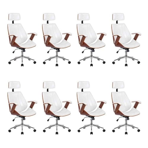 A cadeira Kopenhagen Presidente é toda revestida em couro ecológico e possui sua estrutura em madeira, o que a torna ótima por conta de seu design para salas de reuniões e presidência. Ela também possui o mecanismo relax, o que irá manter quem estiver sentado nela mais confortável, o que unido a seu encosto de cabeça é ainda mais confortável, além de ser possível ajustar a altura do assento! Altura do Conjunto: 124 cm Ambiente: null Ambiente Principal: Escritório Cor: Branco Informação Complementar: 8x Cadeira Escritório Presidente Giratória Kopenhagen com Apoia Cabeça Branco/Marrom Largura: 61 cm Altura: 124 cm Peso: 16,5 kg Profundidade: 63 cm Necessita Montagem: Sim