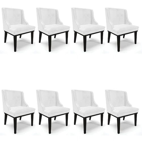 O Kit 8 Cadeiras Estofadas Base Fixa de Madeira Preto Lia Sintético Premium Branco, da Ibiza, vai transformar a decoração da sua Sala de Jantar! Confira!