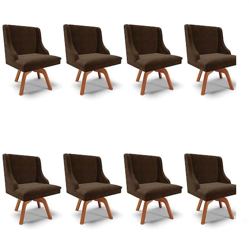 Kit 8 Cadeiras Estofadas Giratória para Sala de Jantar Lia Suede Marrom - Ibiza
