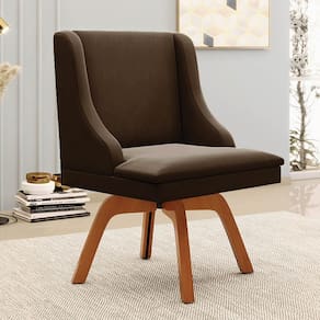 A Cadeira Estofada Lia possui design sofisticado e é ideal para quem busca aconchego e elegância na hora das refeições. A Base Giratória de Madeira é resistente e permite que se movimente com facilidade e ainda suporta até 120kg! Além disso, a Cadeira Estofada é produzida com Madeira Eucalipto de reflorestamento ecologicamente correta e o estofado é composto em espuma macia D-23 e revestido em tecido Suede, altamente resistente, agradável ao toque, confortável e versátil, ou seja, combina com vários estilos de decoração!