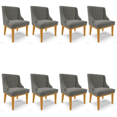 As cadeiras vêm ganhando destaque na decoração e chegam a ser protagonistas na Sala de Jantar, vem conhecer o Kit 8 Cadeiras Estofadas para Sala de Jantar Base Fixa de Madeira Castanho Lia Suede Grafite, da Ibiza e encante-se!
