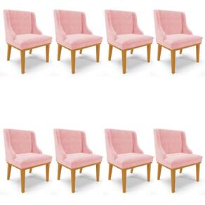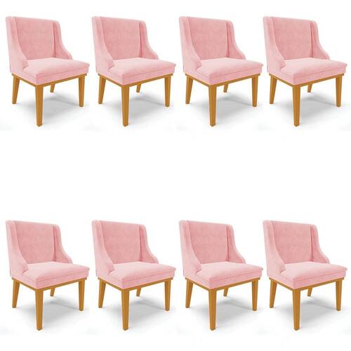 As cadeiras vêm ganhando destaque na decoração e chegam a ser protagonistas na Sala de Jantar, vem conhecer o Kit 8 Cadeiras Estofadas para Sala de Jantar Base Fixa de Madeira Castanho Lia Suede Rosa bebê, da Ibiza e encante-se!