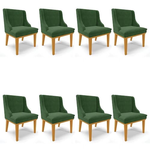 As cadeiras vêm ganhando destaque na decoração e chegam a ser protagonistas na Sala de Jantar, vem conhecer o Kit 8 Cadeiras Estofadas para Sala de Jantar Base Fixa de Madeira Castanho Lia Suede Verde, da Ibiza e encante-se!