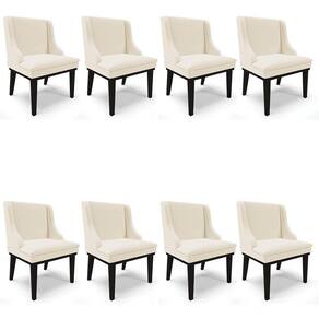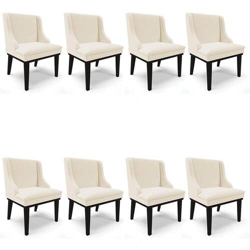 Procurando conforto e praticidade? Confira o Kit 8 Cadeiras Estofadas para Sala de Jantar Base Fixa de Madeira Preto Lia Linho Bege, da Ibiza.