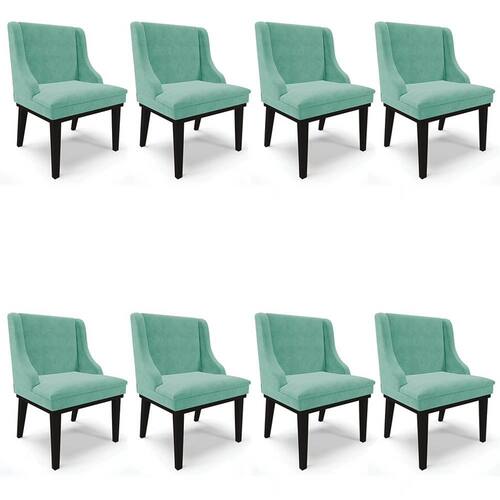 Nada melhor que estar acomodado com uma bela Cadeira confortável, por isso, a Ibiza desenvolveu o Kit 8 Cadeiras Estofadas para Sala de Jantar Base Fixa de Madeira Preto Lia Suede Azul Turquesa, confira os detalhes!