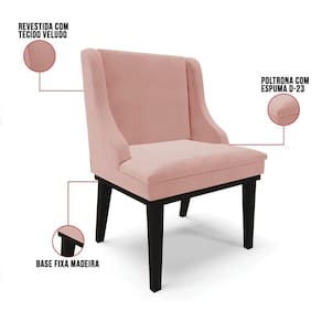 O Kit 8 Cadeiras Estofadas para Sala de Jantar Base Fixa de Madeira Preto Lia Veludo Rosê, da Ibiza, vai deixar a sua Sala de Jantar um espetáculo, confira!
