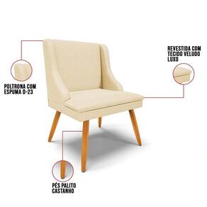 A Cadeira Estofada com Pés Palito vem ganhando o coração das casas brasileiras, deixando-as mais charmosas com um leve toque retrô! Pensando nisso, a Cadeira Estofada Lia foi desenvolvida para dar um toque elegante e clean na decoração da sua casa desde a Sala de Jantar, Sala de Estar, Varanda até Área Gourmet, tornando o ambiente especial para reunir a família e os amigos garantindo momentos memoráveis! O móvel é produzido com madeira de eucalipto de reflorestamento, ecologicamente correto, conferindo qualidade, e resistência! A parte estofada é composta por espuma macia densidade D-23 e revestida em Veludo, tecido elegante e clássico, macio, aconchegante e altamente resistente.