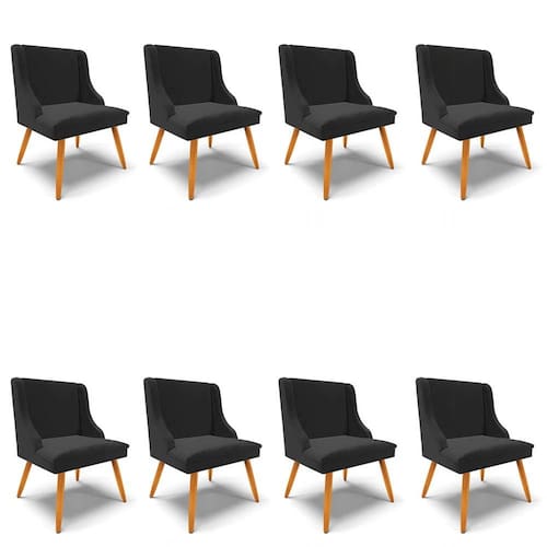 O Kit 8 Cadeiras Estofadas para Sala de Jantar Pés Palito Lia Veludo Preto, da Ibiza, foi desenvolvido para ser o diferencial na sua casa, confira!