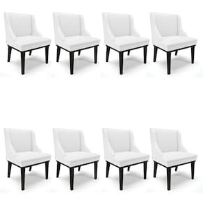 Pensando em dar uma repaginada na sua Sala de Jantar? Conheça o Kit 8 Cadeiras Estofadas Sala de Jantar Base Fixa de Madeira Preto Lia Sintético Branco, da Ibiza e encante-se!