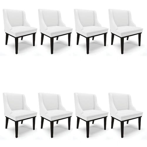 Pensando em dar uma repaginada na sua Sala de Jantar? Conheça o Kit 8 Cadeiras Estofadas Sala de Jantar Base Fixa de Madeira Preto Lia Sintético Branco, da Ibiza e encante-se!