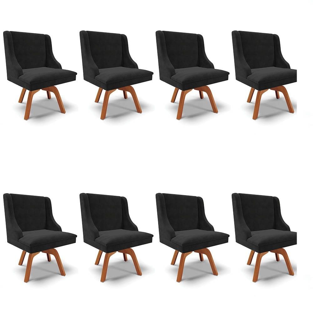 kit 8 cadeiras fixa laguna de madeira cor preta com estofado preto flex mesas e cadeiras