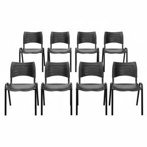 Kit 8 Cadeiras Iso Fixa Empilhável Reforçada para Recepção, Escritório, Igreja Cor Preta - Combo Stock