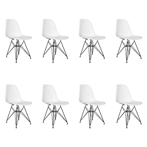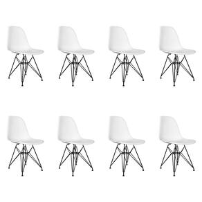 Kit 8 Cadeiras Jantar Assento Branco Eiffel Eames Base Ferro Preto - Preto