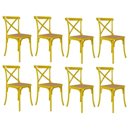 Altura: 90cm Largura: 44cm Profundidade: 44cm Peso: 5,1kgKit 8 Cadeiras Jantar Cross Katrina X Amarela Assento Bege AÃo