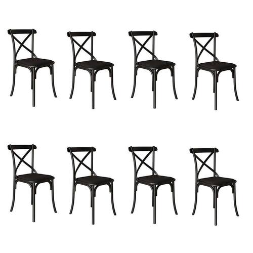 AS IMAGENS SÃO MERAMENTE ILUSTRATIVAS E PODEM SOFRER VARIAÇÕES DE COR E PEQUENOS DETALHES DE ACORDO COM O SEU MONITOR, ILUMINAÇÃO DO AMBIENTE E ATÉ MESMO A SUA PERCEPÇÃO 8 Cadeiras Jantar Katrina Premium Assento Corano Preto AÃo Preto