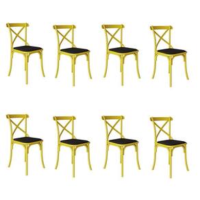 AS IMAGENS SÃO MERAMENTE ILUSTRATIVAS E PODEM SOFRER VARIAÇÕES DE COR E PEQUENOS DETALHES DE ACORDO COM O SEU MONITOR, ILUMINAÇÃO DO AMBIENTE E ATÉ MESMO A SUA PERCEPÇÃO VISUAL.Kit 8 Cadeiras Katrina Assento Corano Preto AÃo Amarelo