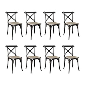 AS IMAGENS SÃO MERAMENTE ILUSTRATIVAS, PODENDO HAVER PEQUENA VARIAÇÃO NA TONALIDADE DA COR DEPENDENDO DE CADA TELA OU MONITOR.Kit 8 Cadeiras Katrina Preta Assento Corano Bege AÃo