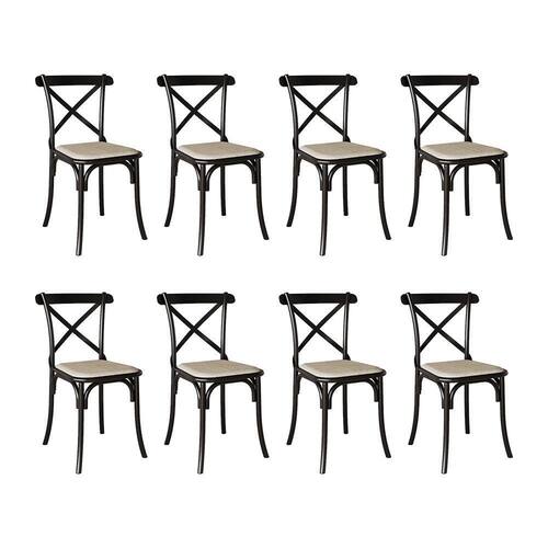 Kit 8 Cadeiras Katrina Preta Assento Corano Bege Aço Asturias