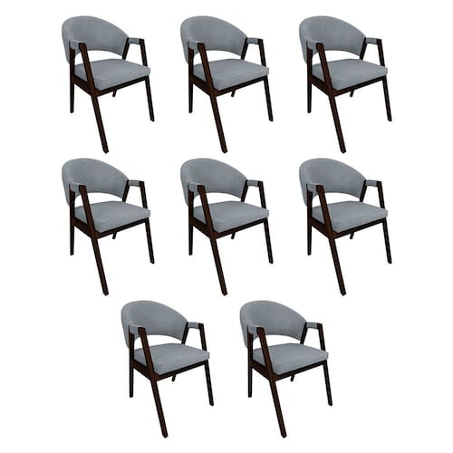 Kit 8 Cadeiras Linho Helen Premium para Mesa de Jantar Área Gourmet em Madeira Maciça - Cinza