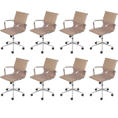 Kit Cadeira office esteirinha baixa para escritório super resistente com assento em PU e estrutura cromada. Sistema relax com travamento. Base de encaixe metalizado. Rodas em PU que não danificam o piso. Ideal para escritórios, sala de reuniões e home office. Deixando seu ambientes muito mais moderno e com estilo. Produto Montado: Sim Altura do Conjunto: 92 cm Ambiente: null Ambiente Principal: Escritório Braço com Ajuste de Altura: Não codigo_ean: 7909903905814 Complexidade da Montagem: Baixa: pode ser montado por uma pessoa sozinha Cor: Caramelo Cor da Base: Cromado Cor do Produto: Caramelo Empilhável: Não Encosto Reclinável: Sim Giratória: Sim Informação Complementar: 2x Kit 4 Cadeiras para Escritório Diretor Esteirinha com Relax Sintético 3301 Or Design Caramelo Largura: 61 cm Altura: 92 cm Peso: 12,19 kg Profundidade: 46,5 cm Necessita Montagem: Sim