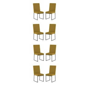 Você receberá 4 volumes, ou seja, oito Cadeiras Estofadas para Mesa de Jantar com Base Industrial Preto.