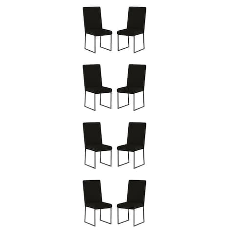 Você receberá 4 volumes, ou seja, oito Cadeiras Estofadas para Mesa de Jantar com Base Industrial Preto.