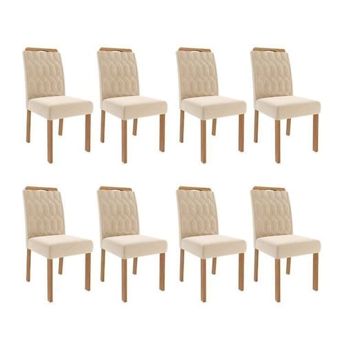 O Conjunto 8 Cadeiras Paola une design sofisticado e conforto excepcional. Estruturada em madeira de eucalipto, reconhecida pela sua resistência e durabilidade, a peça traz assento e encosto estofados com espuma de alta densidade, proporcionando máximo conforto. O revestimento em tecido sued confere um toque macio e refinado, enquanto o encosto com detalhes bordados valoriza o visual com um acabamento elegante. Ideal para salas de jantar que buscam estilo e aconchego, a Cadeira Paola é sinônimo de qualidade e bom gosto. Acabamento: Verniz Altura do Conjunto: 99 cm Ambiente: null Ambiente Principal: Sala de Jantar Cor: Nude Informação Complementar: 4x Jogo com 02 Cadeiras Paola Wood Ii Madeira/Nude Largura: 46 cm Altura: 99 cm Peso: 18 kg Profundidade: 57 cm Necessita Montagem: Sim