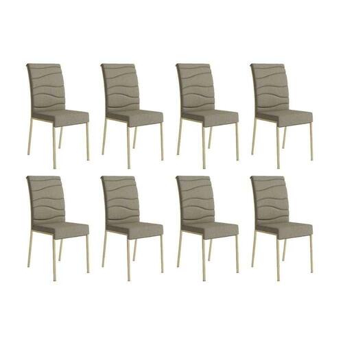 Kit 8 Cadeiras Sala Jantar Wave 1754 8 Un Dourado/linho Bamboo/courano Bamboo/noce - Carraro