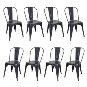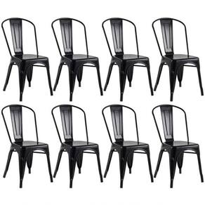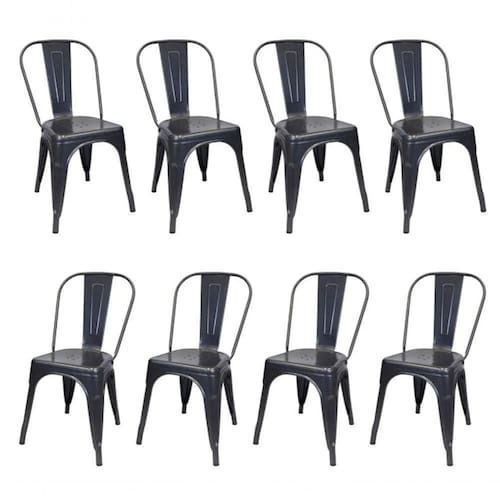 Kit 8 Cadeiras Tolix Iron Ferro Preta Fosca Aço Industrial Sala Cozinha Jantar Bar Cadeira Tolix Iron Design Cadeira Fixa Design Tolix Metal Preta Conhecida popularmente como Cadeira Francesinha, tem grande influência no mercado europeu devido ao seu elegante design retrô. O modelo clássico idealizado pelo francês Xavier Pauchard nos anos 20 foi resultado de seu experimento pioneiro da fabricação de móveis com metal cadeira com formas simples, porém funcionais fez tanto sucesso que se tornou muito popular em fábricas, escritórios, restaurantes, bem como nos cafés, bares e parques públicos da época. Hoje conhecida como Cadeira Tolix, é um ícone da estética industrial, podendo ser utilizada em qualquer ambiente trazendo elegância e estrutura em aço de carbono e acabamento em pintura eletrostática, pode ser utilizada em ambientes externos. Projetada com alguns furos em seu assento com a finalidade de não acumular água, facilitando sua limpeza e manutençã Cadeira Tolix é clássica, com design vintage e pode ser combinada com outros modelos de cadeiras. Disponível em variedade de cores, permitindo um ambiente mais descontraído. Instruções De LimpezaAplique um sabão em uma esponja úmida e limpe toda a superfície da banqueta, e logo em seguida, limpe o sabão com um pano branco úmido. Assento: Aço com Pintura EpóxiBase: Aço com Pintura Epóxi Profundidade: 47 cmLargura: 45 cmAltura Total: 86 cmAltura do Chão Até o Assento: 45 cmProfundidade Interna do Assento: 36 cmLargura Interna do Assento: 45 cmPeso Máx. Recomendado: 120 kgsPeso unitário: 6 kgs Informações importantes:- Os objetos que ambientam as fotos não acompanham o produto.Verifique as dimensões do produto e certifique-se que o percurso que ele fará até o de uso permite sua passagem.