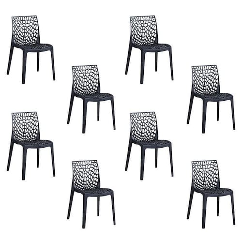 Kit 8 Cadeiras Vazada em Polipropileno Gruvyer Espresso Móveis Preto