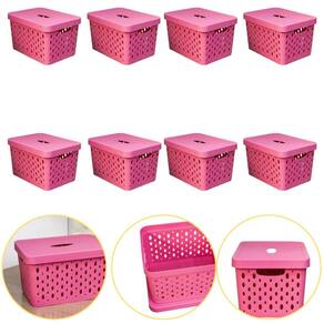 Kit 8 Caixa Cesto Organizador Multiuso Empilhável 17 L Rosa Kit 8 Caixa Cesto Organizador Multiuso Empilhável 17 L Rosa DESIGN FUNCIONAL