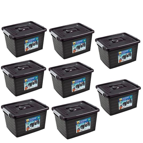 Kit 8 Caixa Organizadora Multiuso Preta com Tampa 30L Caixa Organizadora Container Preta com Trava 30 Litros