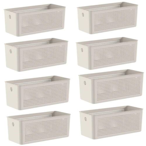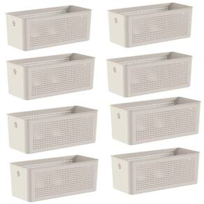 Kit 8 Caixas Organizadoras Multiuso 6,6L Cestos Retangulares com Alças Bege Flow Ou.
